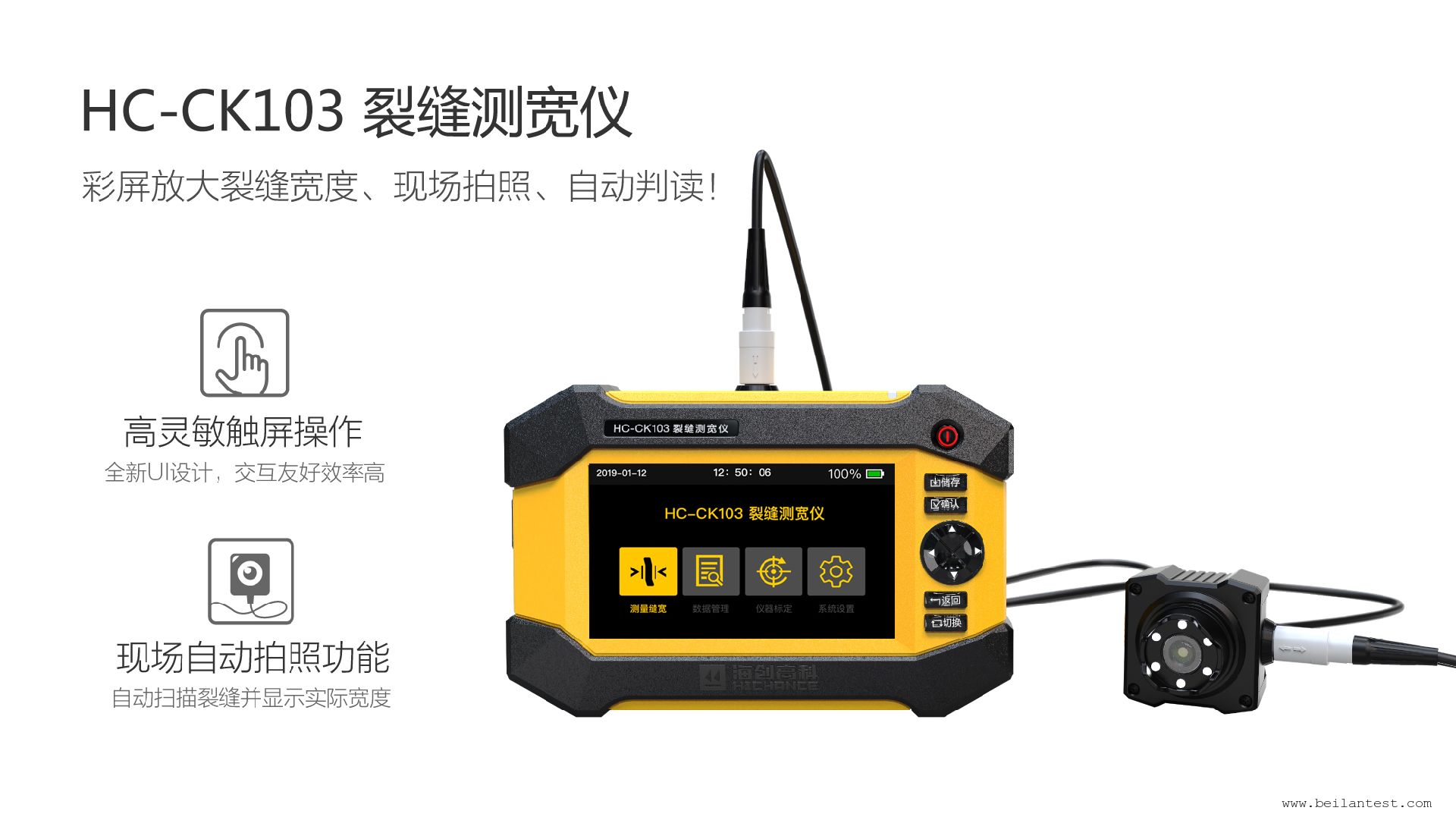 品牌:HC 型号:HC-CK103 加工定制:否 测量范围:0mm ~ 10mm 测量精度:0.01mm 显示器:高亮度液晶显示 尺寸:5 寸 (1280x720) mm 用途:可用于桥梁、隧道、构建筑物混凝 HC-CK103 裂缝测宽仪应用领域 可用于桥梁、隧道、构建筑物混凝土结构表面、金属表面等裂缝宽度的定量检测。 HC-CK103裂缝测宽仪符合标准 · JGJ125-2016《危险房屋鉴定标准》