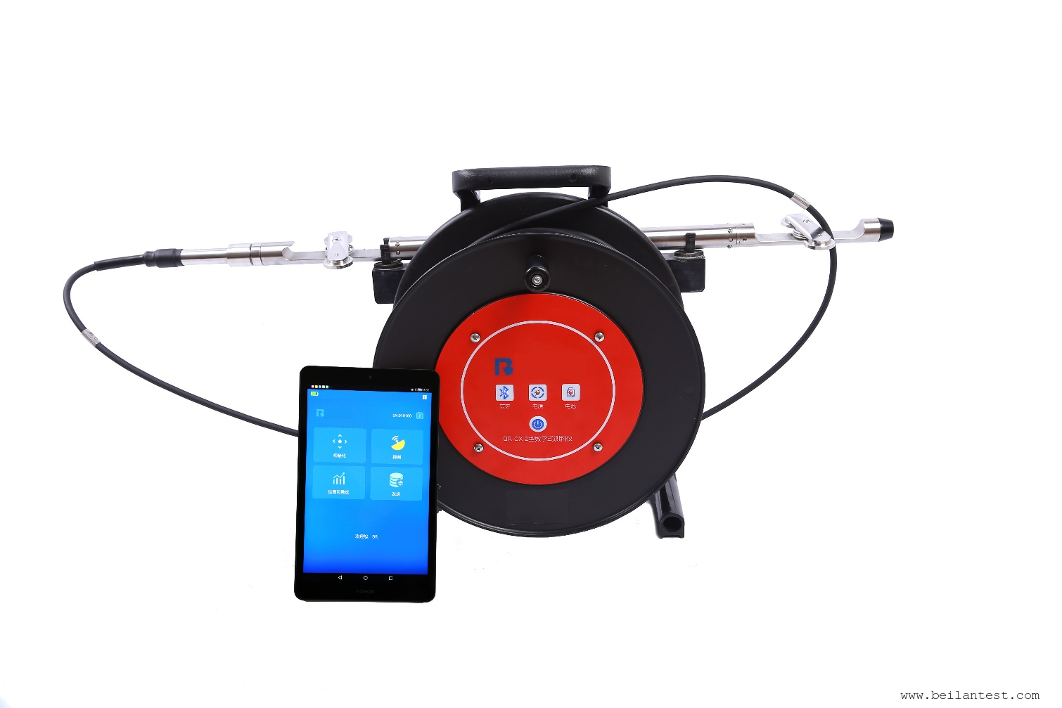 BR-CX-3型数字式测斜仪,标配双轴探头,50米电缆及蓝牙控制绞盘,安卓系统三防工业平板。