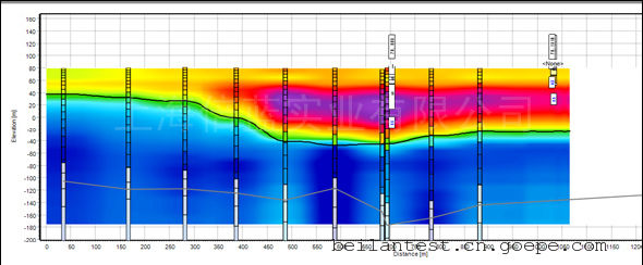 地下河道上的电阻率数据:将WalkTEM 2与AarhusWorkbench配对,可以将电阻率结果可视化为二维文件(上图)、深度切片(下图)甚至三维体积。 精确
